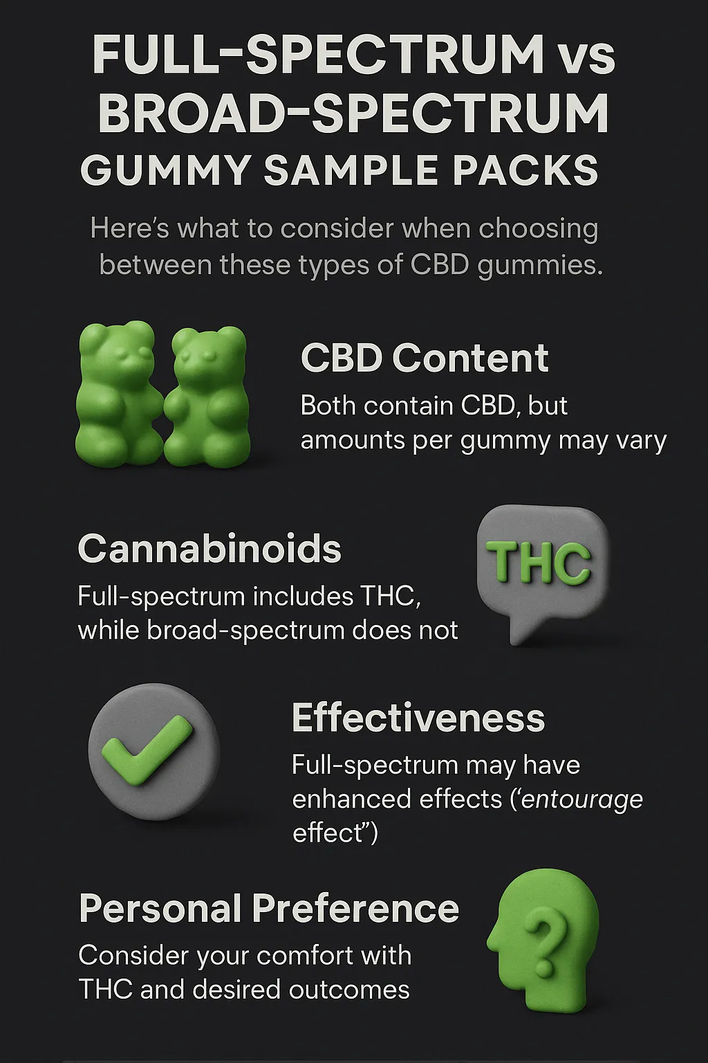 Compare how each spectrum interacts with your body so you can select gummies that feel natural, balanced, and effective.
